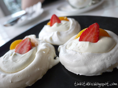 on my swimsuit hunt so we ended up grabbing a drink – Iced Lemon Tea for her and a hot pot of Green Tea for me – and tucking in to Strawberry & Peach Pavlovas at The Apartment. =)